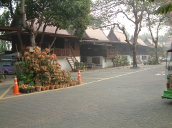 Wir machten uns auf zu unserem ersten Erkundungsgang und fanden gleich neben unserem Hotel einen MC Donald. Hier genossen wir unser erstes Mahl in Thailand. Für 2 Cheeseburger, 1 x Pommes und 1 große Cola haben wir 99 Baht, das sind umgerechnet 2 Euro, bezahlt. In den Straßen von Bangkok herrscht viel Verkehr, viel Smog, so dass die Leute dort mit Gesichtsmasken herum laufen. Um 19.00 Uhr machten wir uns auf zum Abendessen und zur ersten Begegnung mit unserem Reiseleiter. Das Essen im Hotel war wesentlich besser, als die Zimmer. Da wir ganz kaputt vom Flug, der Zeitverschiebung und den ersten Erlebnissen waren, gingen wir nach dem Abendessen schlafen. Damit wir morgens pünktlich wegfahren konnten, hat unser Reiseleiter Tha Nu die Weckzeit auf 5.00 Uhr morgens festgelegt. Wir waren so kaputt, dass wir bis zum Wecken schliefen wie die Murmeltiere. weiter Bilder ...... hier klicken! Dienstag, den 6.Februar 2007