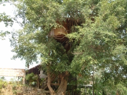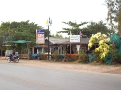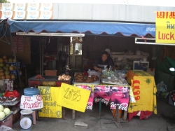 Nach 2 Stunden Aufenthalt in der Tempelanlage machten wir uns wieder auf den Weg, nun zu unserem ersten Mittagessen in Thailand. An dem ersten Restaurant angekommen waren wir zuerst etwas skeptisch, als wir jedoch zu unseren Tischen geführt wurden waren wir begeistert. Das Restaurant war ein Freiluftrestaurant (wie die meisten in Thailand) mit einer Super Atmosphäre. Und das Essen, welches uns hier präsentiert wurde, war absolut spitze. Das Beste am ganzen Essen war das Grüne Curry mit grünen Bohnen und Fleisch. Ich glaube, das war auch das Beste, was ich überhaupt in Thailand gegessen habe, außer vielleicht die Scampi bei Wilai, aber dazu komme ich viel später noch mal drauf. Für unsere Getränke incl.Trinkgeld haben wir 100 Baht ausgegeben. Im Garten des Restaurants wuchsen Feigen, Bananen, Granatäpfel, Kokosnüsse. Ein richtiges kleines Paradies. Nachdem wir dieses herrliche Mahl genossen hatten ging es weiter nach Sukkotai.