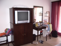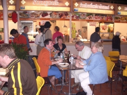 Udo wachte mit 39 Grad Fieber auf. Wir blieben den ganzen Tag im Zimmer und ich versuchte, das Fieber zu senken. Abends ging es ihm dann etwas besser, so dass wir Anzug probieren und essen gehen konnten. Bei KIM hat er eine Hühnersuppe gegessen, die ihm so den Schweiß aus den Poren trieb, dass er wirklich ganz nasse Kleidung an hatte. Deshalb gingen wir gleich wieder auf unser Zimmer. Nachts kam das Fieber wieder. Erst am nächsten Tag ging es ihm dann wieder besser. Er hatte auch total den Sonnenbrand, wahrscheinlich war das ein Sonnenstich vom Tag vorher.