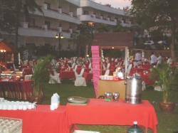 An unserem ersten Morgen in unserem Hotel standen wir um 7.30 Uhr auf. Nach dem Duschen nahmen wir unser erstes Frühstück im Novotel ein. Das Buffet war reichlich und gut. Im Hotel gab es einen Shop, in dem man alles Mögliche kaufen kann und einen Spa-Bereich. Hier wird eine Thai-Massage für 30 Baht angeboten. Es gab ein A La Card Restaurant, Ein Barbecue im Freien und ein italienisches Restaurant. Die Liegewiese hatte viele Schattenplätze mit ordentlichen Liegen und Auflagen. Unseren ersten Tag verbrachten wir mit Relaxen, Baden im indischen Ozean und im Pool. Lufttemperatur 34 Grad C. Wasser sicherlich rd. 27 Grad C. Es gab einen wunderschönen Sandstrand an dem es rechts und links vom Hotel einige Restaurants gab. Wir haben uns für die ersten Tage Essenmarken gekauft. 450 Baht p.Tag und Person. Das erste Abendessen im Hotel war sehr gut, jedoch viel europäischer als auf unserer Rundreise. Zum Sonderpreis von 600 Baht haben wir 10 Wäschestücke waschen lassen.