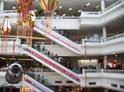 Heute ist unser Abflugtag. Um 6:30 Uhr wurden wir mit einem Shuttlebus abgeholt. Das Frühstück war in eine Pappschachtel verpackt, da das Restaurant noch nicht geöffnet hatte. Wir fuhren ca. 1 Stunde nach Pattaya, wo wir in den großen Bus umstiegen. Von hier aus waren wir noch ca. 2 Stunden unterwegs bis zum Flughafen. In Pattaya sind einige alleinstehende Herren eingestiegen. Hier konnten wir die Gespräche zwischen den Herren hören. Wir haben beide festgestellt, dass wir nie in diese Region von Thailand gehen werden. Hier herrscht wirklich reiner Sextourismus, vor allem gibt es zwischenzeitlich anscheinend auch schon Probleme mit Russen, die hier das Rotlichtmilieu übernehmen wollen. Sollen die dort hingehen, dies es nötig haben, wir wissen, dass Thailand viel mehr zu bieten hat. Am Flughafen angekommen mussten wir uns in eine lange Schlange vor dem Eincheckschalter einreihen. Wir sind erschrocken und dachten, das dauert Stunden. Doch es ging sehr flott voran, so dass wir in einer halben Stunde unser Gepäck ohne Problem los wurden. Nun gingen wir in den Zollfreien Bereich, um uns dort noch die Zeit zu vertreiben bis zum Abflug. Dieser Bereich war so groß, dass es uns nicht langweilig wurde. Wir haben noch bei Burgerking gegessen und für Reinhold Zigaretten gekauft. 1 € p.Schachtel. Auch für Hildegard sind wir noch fündig geworden und haben für sie noch Orchideen mitgenommen. Nun ging es in den Flieger. Der Flug dauerte über 12 Stunden.