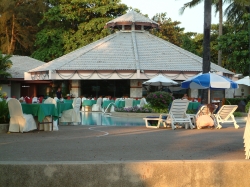 Ein weiterer Faulenz-Urlaubstag. Wir fuhren heute noch mal nach Ban Pae. Heute regnete es tatsächlich das erste Mal richtig. Allerdings war auch dies kein richtiger Tropenregen. Nur die Luftfeuchtigkeit war so furchtbar, dass man nicht wusste, ob man vom Regen oder vom Schwitzen nass war. Da wir noch ein paar Souvenirs kaufen wollten, gingen wir noch mal von Laden zu Laden. Nachdem wir in einem fündig geworden sind, hat uns ein Mädchen vom Personal noch zwei eiskalte Erfrischungstücher geschenkt, weil wir so furchtbar verschwitzt waren. Udo war fassungslos, wie aufmerksam die Leute hier sind, ohne eine Gegenleistung zu verlangen. Dann machten wir uns mit dem Sammeltaxi wieder auf den Weg zum Hotel. Abends haben wir dann im Hotel gegessen. Es gab ein Meeresfrüchtebuffet, welches rund um den Pool aufgebaut war. Das sah wirklich klasse aus. Wir nutzten die Zeit um noch ein paar Fotos zu schießen. Nach dem essen ließen wir den Abend ruhig ausklingen.